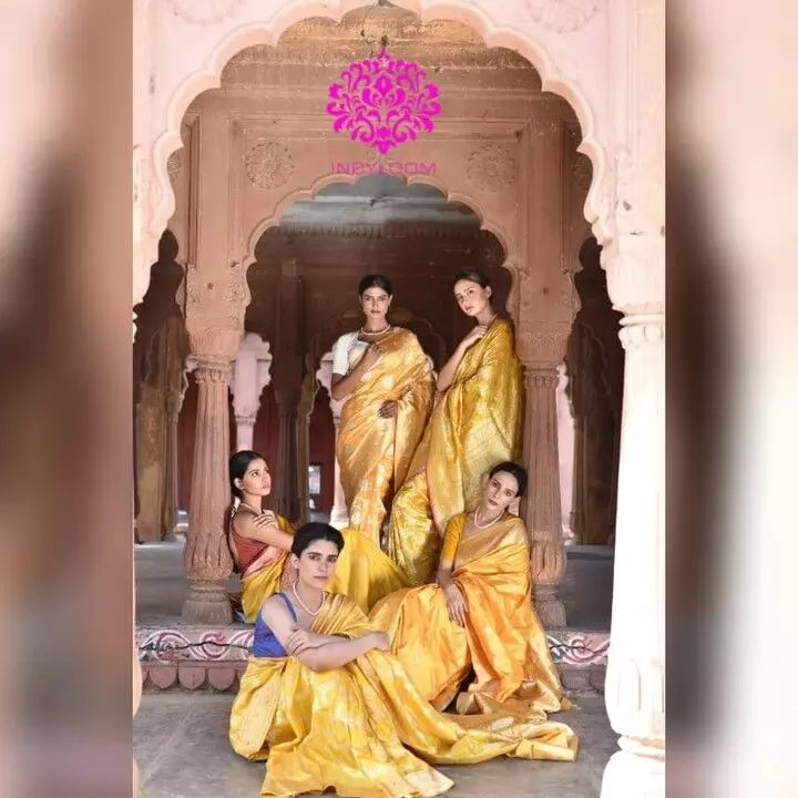 Indyloom offers the best of the city of Kashi with a trail of legacy weaves also. Within the Sakhi Collection, pure katans and tussars are the most popular range. In their premium segment Indyloom has designed a vast range of paithni Katan and ektara, double tani katan Banarasi, pure koriyal, tussar georgettes, rangkat, mashroo, and they are categorised in their Shree Collection.